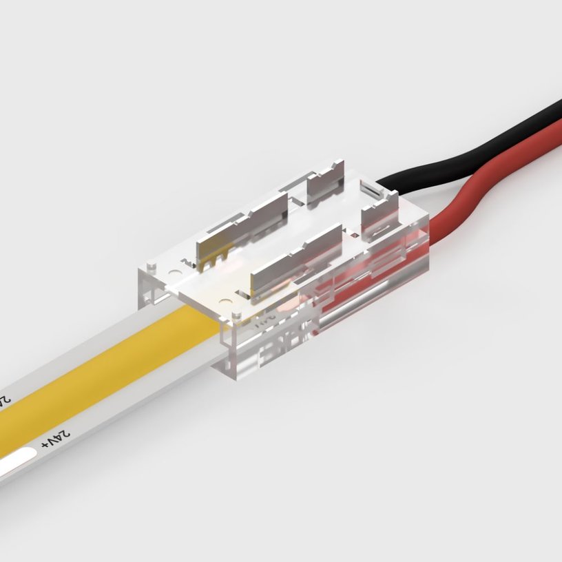The benefit of choosing to connect your LED strip via a clip-on connector is that you do not require any soldering.